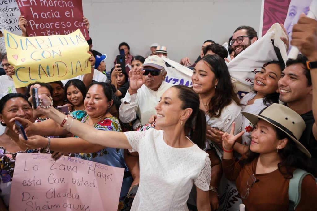 Con porras como “Se ve, se siente, Claudia está presente”, hombres y mujeres de todas las edades se acercaron a saludarla para expresarle su cariño y respaldo en esta campaña, además de tomarse la fotografía del recuerdo.