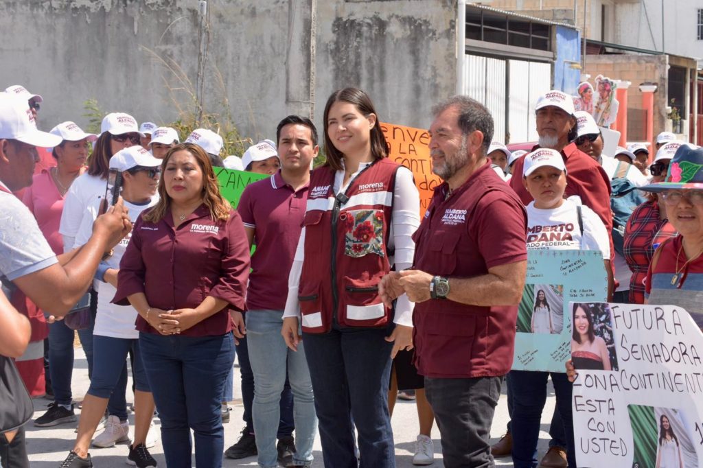 Aldana Navarro saludó hoy a habitantes de la zona continental de Isla Mujeres, junto con Anahí González Hernández, candidata a senador.