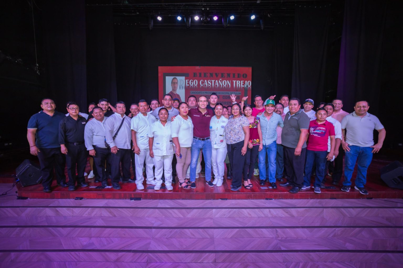 En el encuentro, Diego Castañón hizo énfasis a obras monumentales como el Aeropuerto Internacional de Tulum y el Tren Maya, ambas generan empleos gracias a la visión de los gobiernos de Morena y aliados.