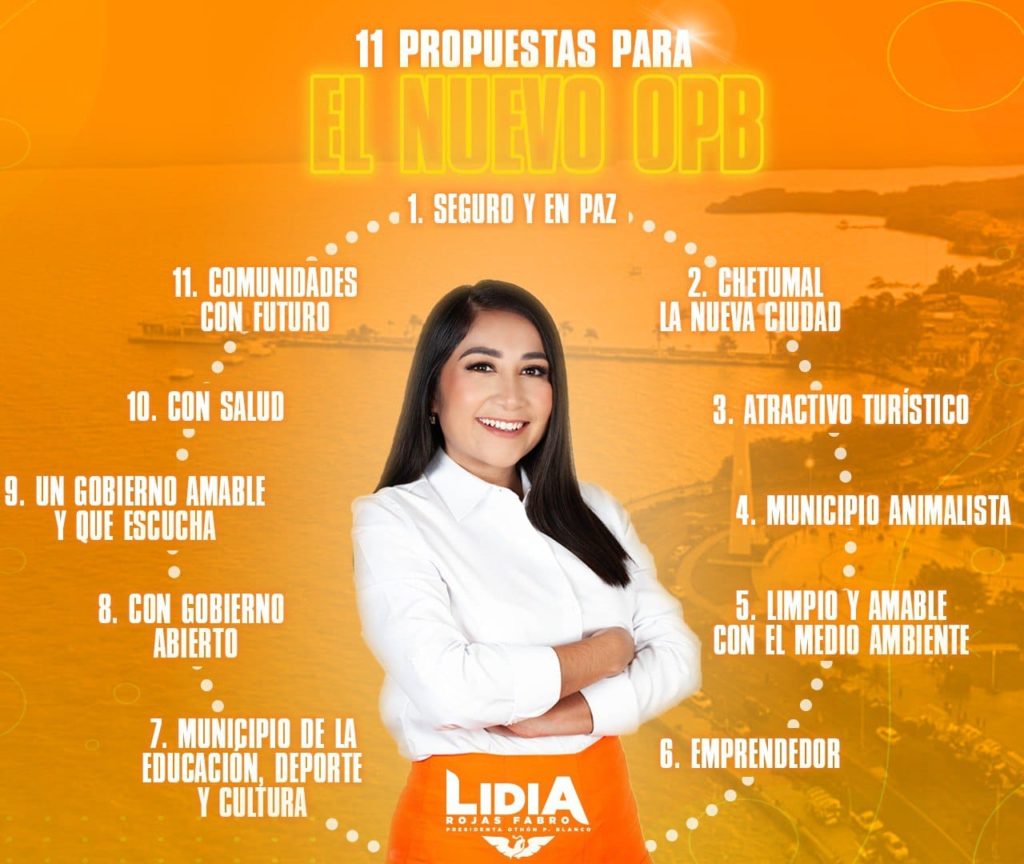 Lidia Rojas Fabro se presenta como una candidata comprometida con el progreso de Othón P. Blanco, buscando implementar estas propuestas con pasión y dedicación. Su objetivo es construir un municipio próspero y unido, donde cada ciudadano tenga la oportunidad de vivir en un entorno seguro, saludable y con un futuro prometedor.