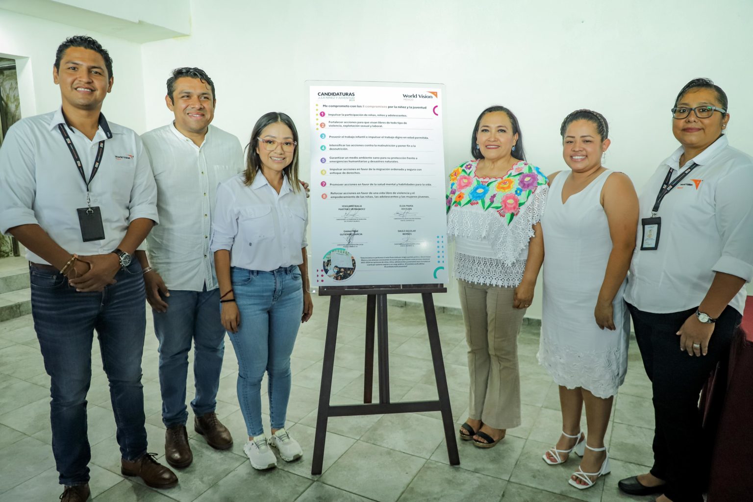 Chetumal, Quintana Roo, 08 de mayo de 2024. – Algo que caracteriza a los gobiernos de la Cuarta Transformación es su firme e inquebrantable compromiso por el bienestar de las niñas, niños y jóvenes, señaló la candidata de Morena y la coalición Sigamos Haciendo Historia a la presidencia municipal de Othón P. Blanco, Yensunni Martínez, al firmar los 8 compromisos por la niñez y la juventud de Wolrd Vision México.
