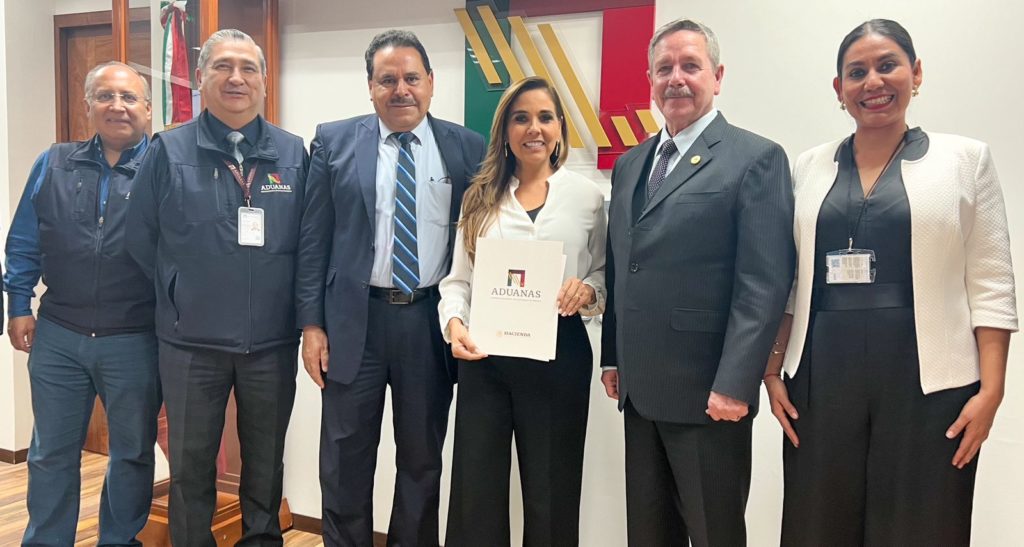 Ciudad de México, 06 de mayo de 2024. – La gobernadora de Quintana Roo, Mara Lezama Espinosa, informó que recibió de la Agencia Nacional de Aduanas de México encabezada por el General André Georges Foullon Van Lissum, la autorización para iniciar operaciones del Recinto Fiscalizado Estratégico de Chetumal, el primero en su tipo en la Península de Yucatán.
