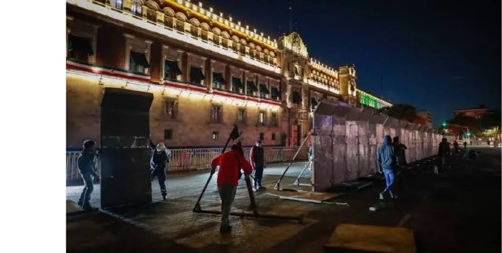 Ciudad de México, 15 de mayo de 2024. – Andrés Manuel López Obrador, presidente de México, indicó que las vallas de tres metros colocadas en las inmediaciones de Palacio Nacional son para “evadir el acoso, para no caer en la trampa de la violencia “, y dejó en claro que se quedarán hasta después de las elecciones del domingo 2 de junio.