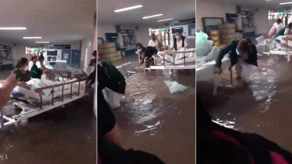 Imágenes en redes sociales muestran que la unidad médica quedó inundada, por lo que los pacientes tuvieron que ser desalojados del hospital.