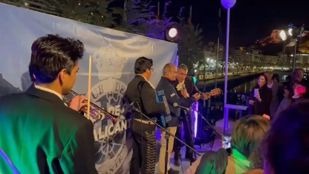 A través de un video que circula en redes sociales, se puede ver al exmandatario rodeado de personas en un pequeño escenario en el “Real Club de Regatas de Alicante”, cantando junto a un grupo de mariachis la canción del “Charro de Huentitán”.