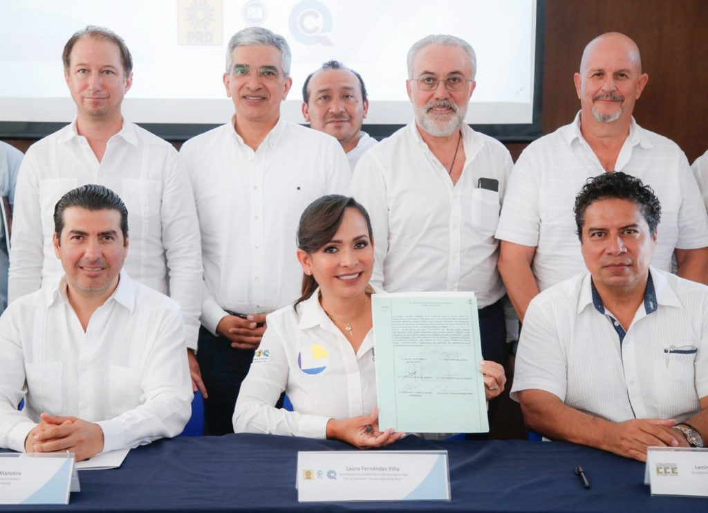 PLAYA DEL CARMEN, Quintana Roo 3 de mayo.- Laura Fernández, candidata a gobernadora por la coalición “Va Por Quintana Roo”, firmó sus Compromisos Por Quintana Roo ante la cúpula empresarial de la entidad, donde estableció que será una gobernadora municipalista para mejorar en serio la situación que viven actualmente las 11 demarcaciones.
