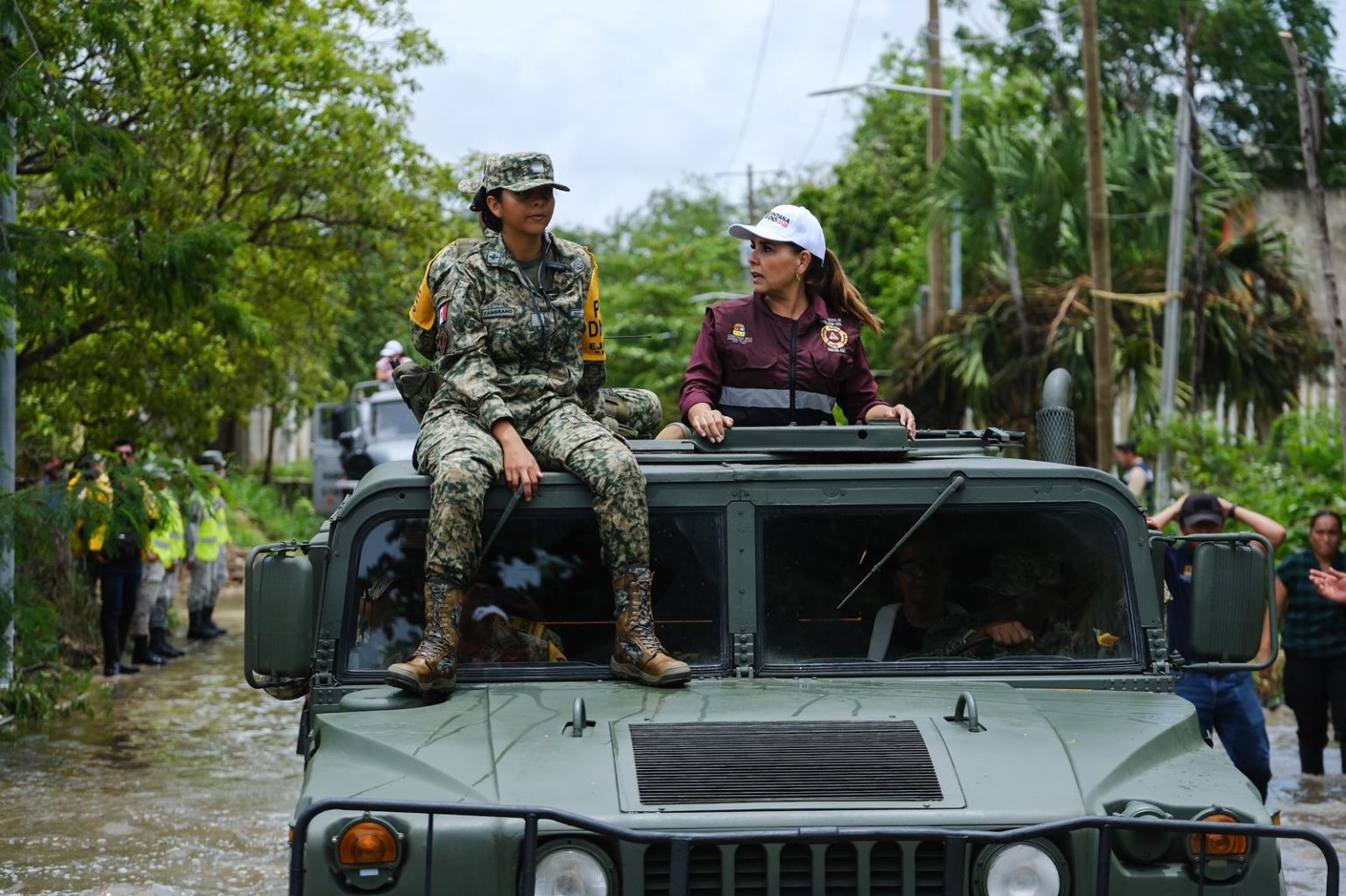 Acompañada de elementos de la Marina, del Ejército, Guardia Nacional y brigadistas del gobierno del estado, la gobernadora Mara Lezama estuvo en las colonias Ampliación Nueva Generación, Territorio Federal y Caribe 1, 2 y 3, coordinando las acciones después de atender personalmente a las familias.