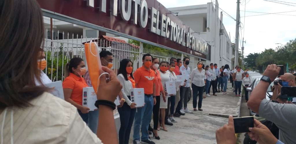 Movimiento Ciudadano (MC) registró a sus candidatos a presidencias municipales en los 11 Ayuntamientos de Quintana Roo ante el Ieqroo, cabe destacar que dicho partido participará “solo” es decir sin alianza o coalición en la próxima jornada electoral del 6 de junio.