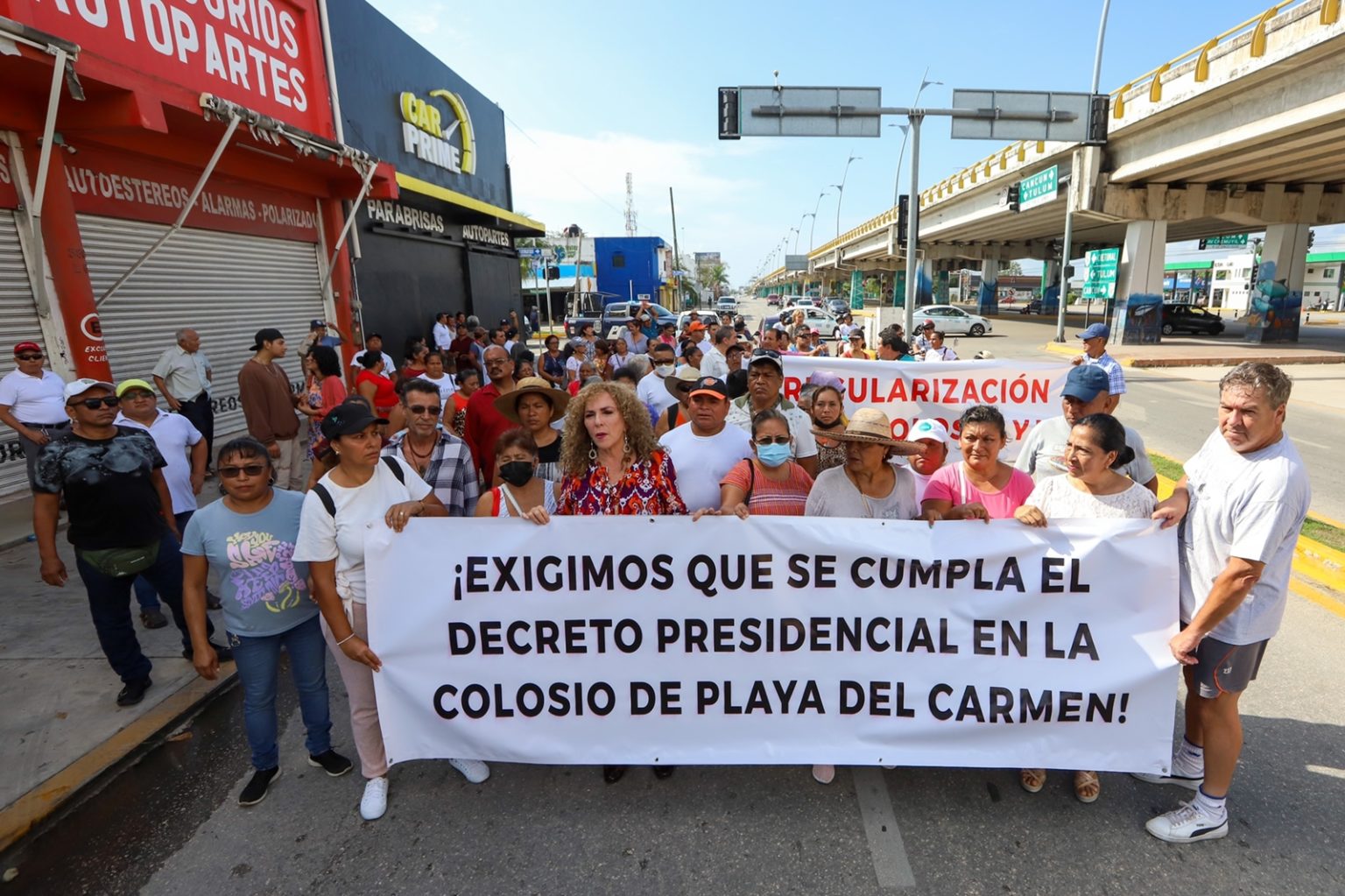 Posteriormente marcharon en la avenida 28 de Julio donde con pancartas en mano, para iniciar un bloqueo parcial de la carretera federal 307 por unos minutos.