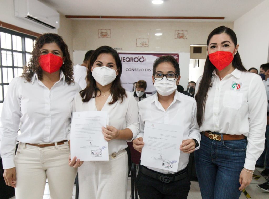 Acompañada de la candidata a Gobernadora Leslie Hendricks Rubio, y la dirigente estatal del PRI, Candy Ayuso Aguilar, Deborah Angulo solicitó su registro al IEQROO, de acuerdo a lo que marca la Ley de Instituciones y Procedimientos Electorales para el Estado de Quintana Roo.