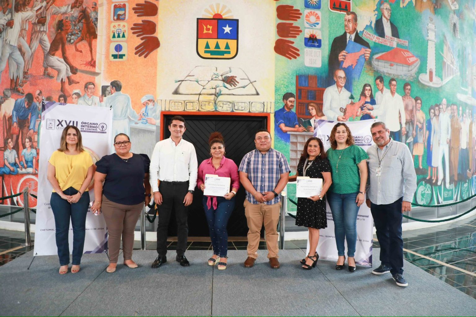 En este marco, se entregaron reconocimientos a Marlene Francisca Puc Cabrera, Rita Dolores Suarez Uh e Irma Yolanda Dorantes Poot, por ser las tres primeras personas servidoras públicas que presentaron su declaración patrimonial.