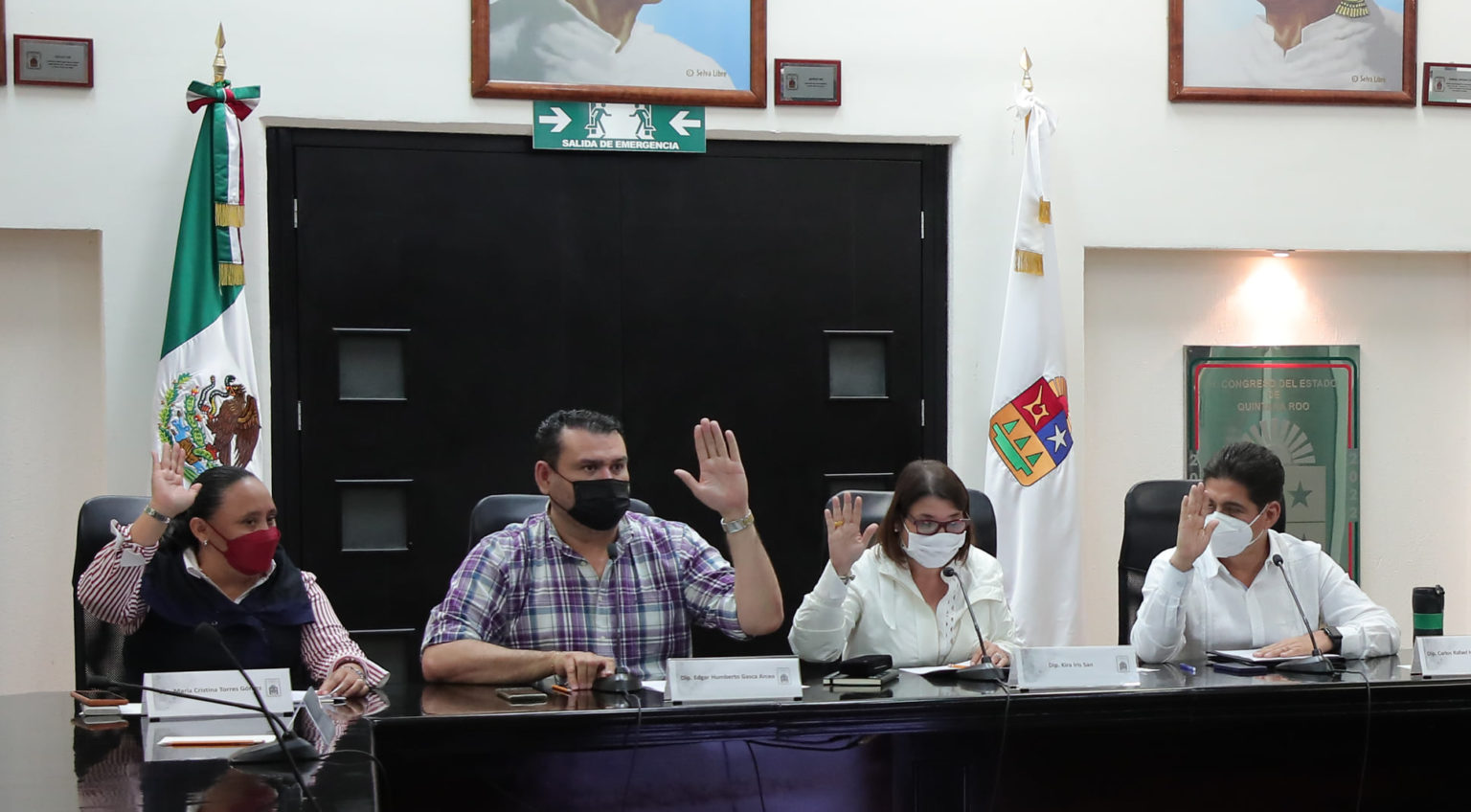 Los integrantes de la comisión de Justicia: Kira Iris San del PAN, Edgar Gasca Arceo y Cristina Torres Gómez de Morena; y Carlos Rafael Hernández blanco del PRI determinaron realizar un receso por tiempo indefinido para continuar con el análisis del proyecto de dictamen que definirá si Jesús Antonio Villalobos Carrillo, Karla Patricia Rivero González y Heyden Cebada Riva cumplen con los requisitos establecidos en la ley, para ser Magistrado Numerario en el TSJQROO por los próximos seis años.
