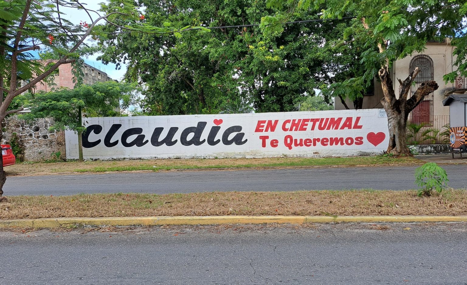 Personas desconocidas iniciaron la pinta de bardas con la leyenda “Claudia, en Chetumal te queremos”, “Claudia Chetumal está contigo” y “Claudia está es tu casa”.