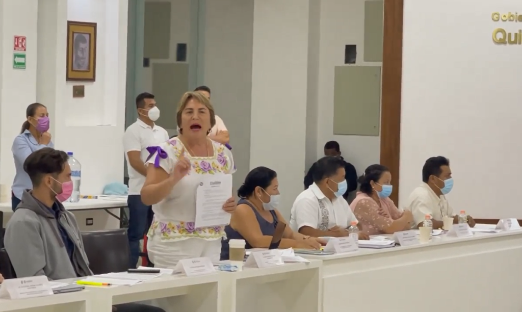 PLAYA DEL CARMEN, Quintana Roo, 29 de octubre.- A gritos, y sin respetar protocolos de participación, la ex alcaldesa de Solidaridad, y ahora regidora, Laura Beristain Navarrete intentó “reventar” la tercera Sesión de Cabildo del Ayuntamiento de Solidaridad, donde se aprobó las modificaciones al Programa Operativo Anual de 20221, por 44 millones de pesos.