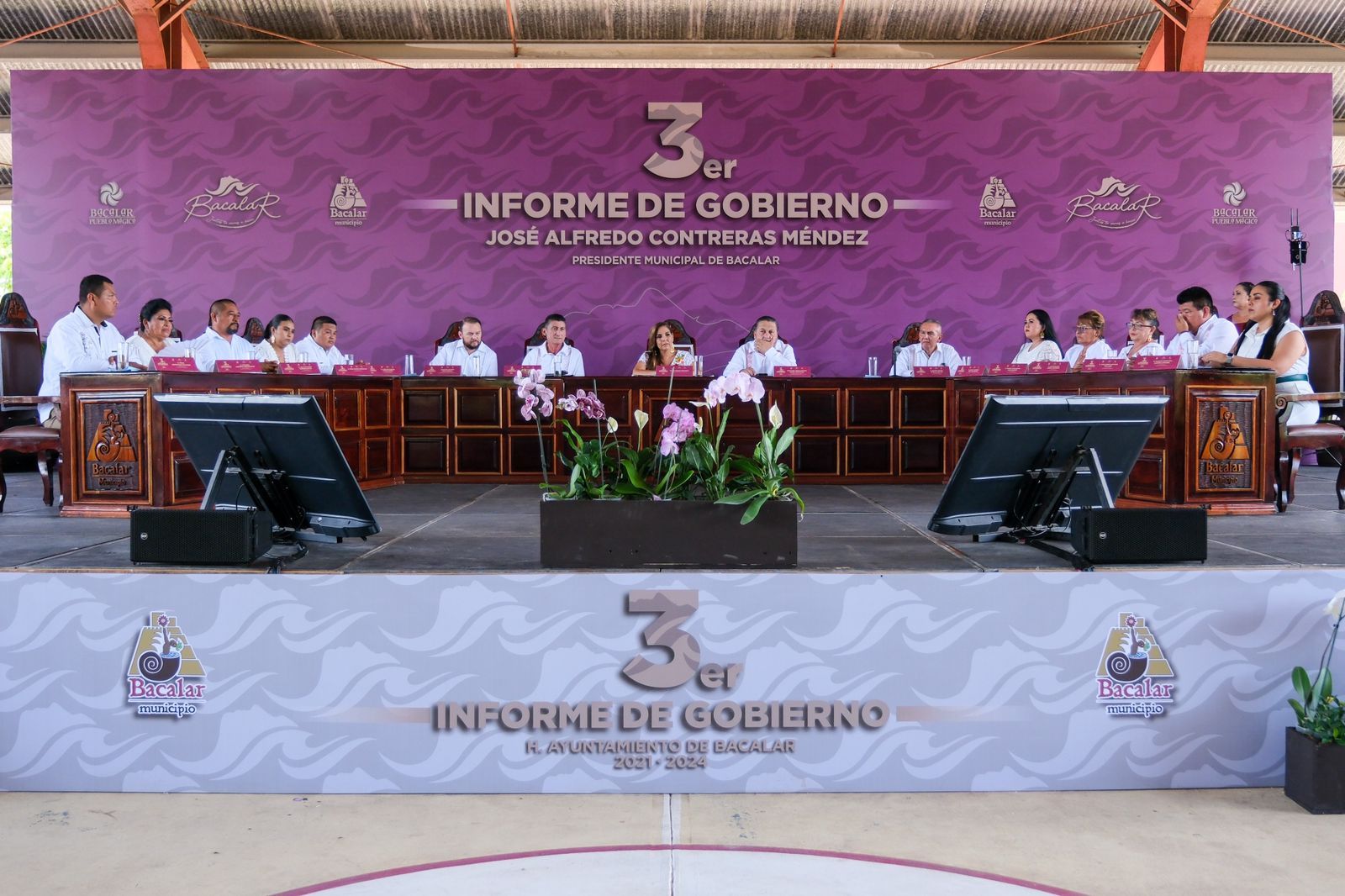 Al dar a conocer avances y logros en el último año de esta administración ante el cuerpo de regidores, y luego de entregar el documento que refleja el estado que guarda el municipio, el presidente Contreras Méndez destacó el importante apoyo que la gobernadora Mara Lezama Espinosa le dio al pueblo de Bacalar a través de un gobierno humanista, progresista que inicia una Nueva Era de la Transformación.
