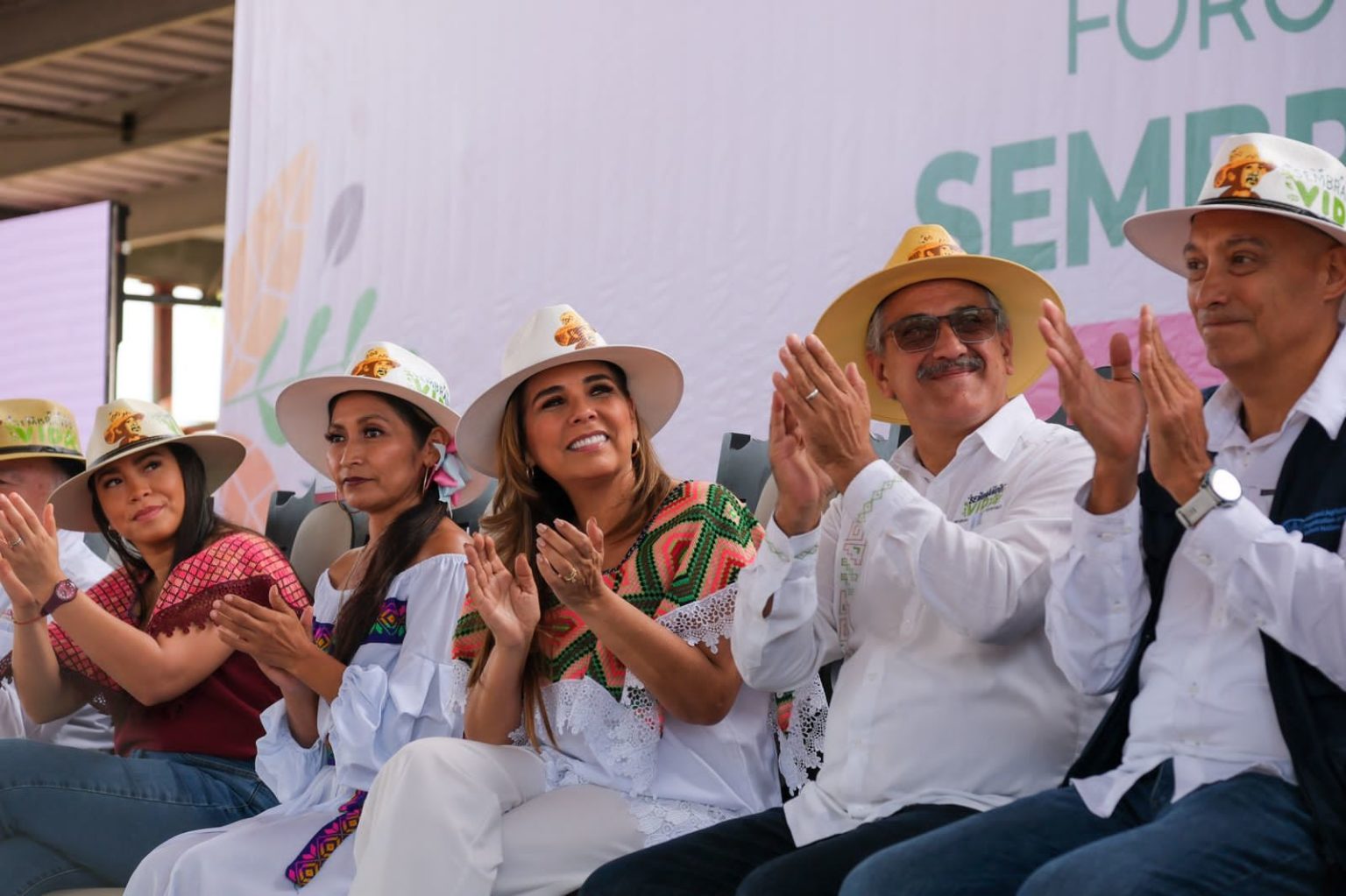 Acompañaron a la Gobernadora la presidenta municipal de Felipe Carrillo Puerto, Maricarmen Hernández Solís, Alfredo Mayén, oficial de la Organización de las Naciones Unidas para la Alimentación y la Agricultura para Mesoamérica; Arturo Abreu Marín, delegado federal de los programas para el Bienestar; Linda Saray Cobos, secretaria de Desarrollo Agropecuario, Rural y Pesca, y el sacerdote maya Edilberto Canché Catzín.