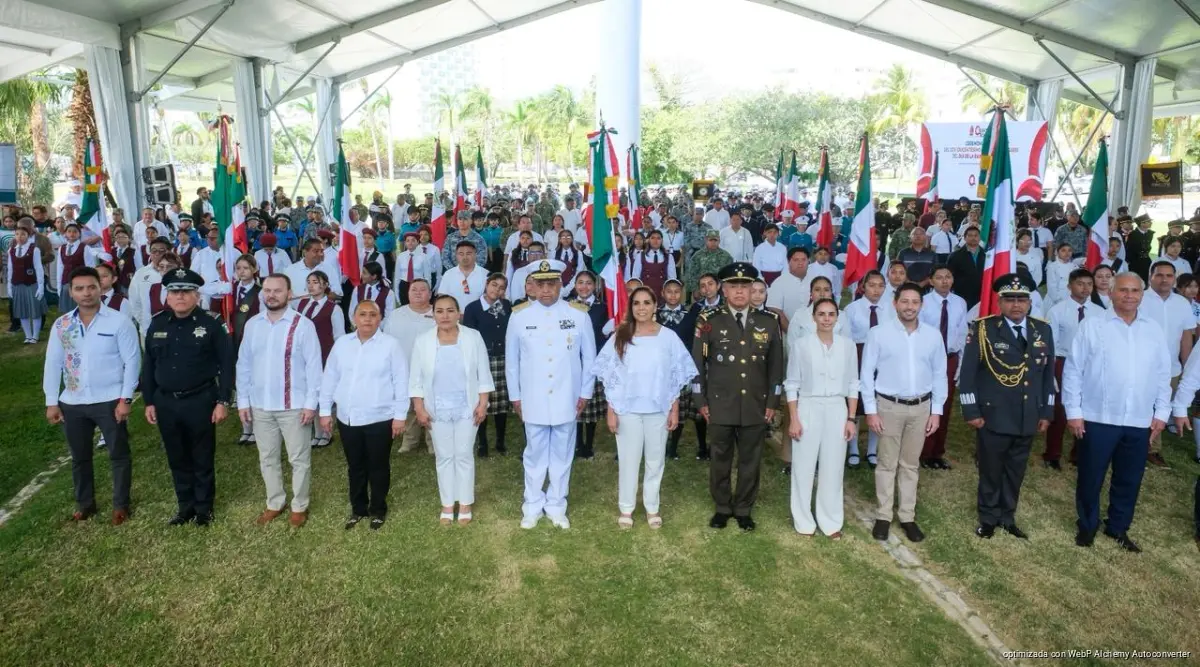 CANCÚN, Quintana Roo, 24 de febrero de 2026. —  En el marco del 205 Aaniversario del Día de la Bandera, la gobernadora Mara Lezama Espinosa encabezó en Cancún la ceremonia cívica conmemorativa, donde convocó a las juventudes a asumir un papel activo en la construcción de la paz todos los días, el respeto y la unidad nacional.