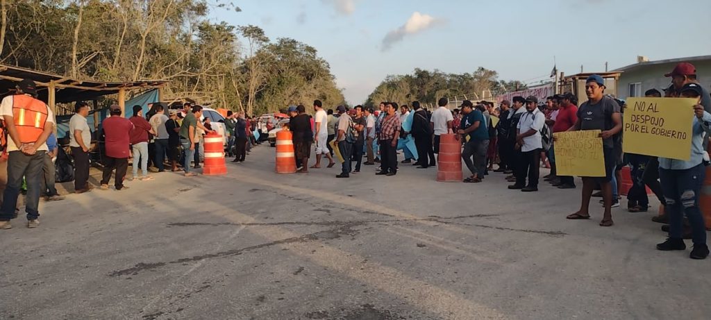 Ante esta situación, cerca de las 4 de la mañana de este lunes, los más de 600 ejidatarios de Chunyaxche y anexos, iniciaron el bloqueo a los trabajos en la construcción del tramo que cruza en el ejido, específicamente en el puente que conectaría con la comunidad de Chumpon y las vías del Tren, mientras que otro grupo de ejidatarios con pancartas en mano con diferentes leyendas bloquearon el acceso al campamento militar que coordina los trabajos del proyecto.