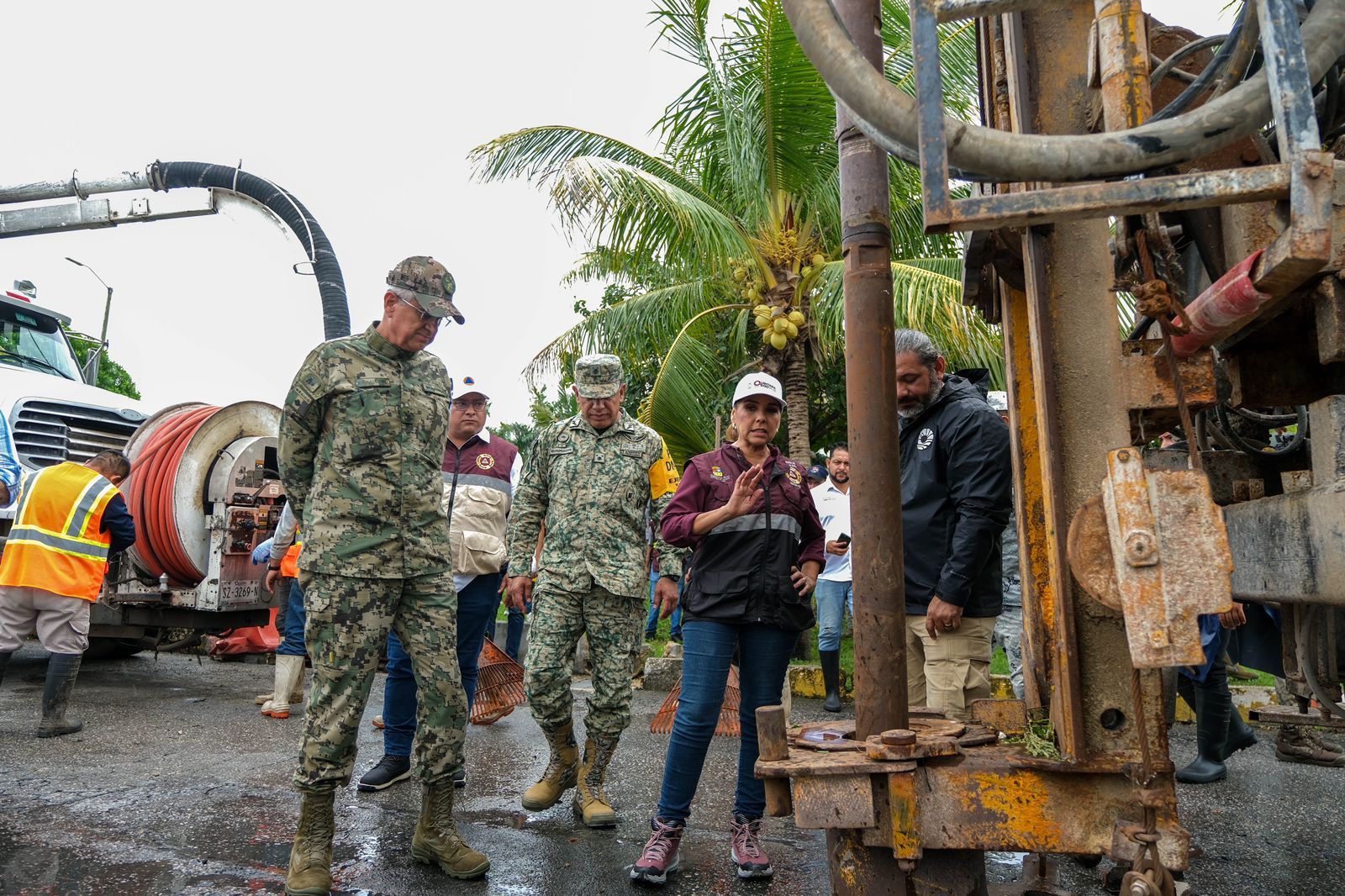 Mara Lezama estuvo acompañada por el comandante de la 34ª Zona Militar, General de Brigada DEM Fidel Mondragón Rivero; el Almirante CG DEM Abraham Eloy Caballero Rosas, Comandante de la Novena Región Naval; de la presidenta municipal Ana Paty Peralta de la Peña, así como del secretario de Seguridad Ciudadana Julio César Gómez Torres.