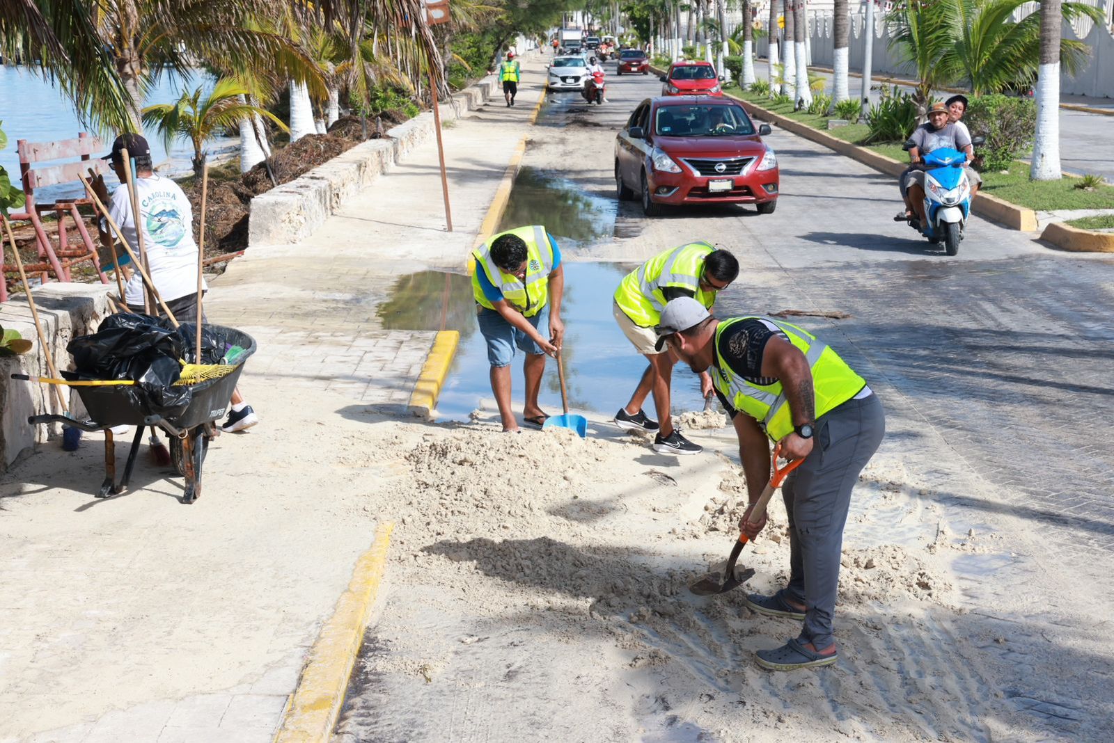 Esta jornada exhaustiva de limpieza comprendió espacios públicos, calles y avenidas, donde se realizó limpieza general, barrido, retiro de arena y levantamiento de vegetación, para mitigar los efectos del huracán “Helene”.