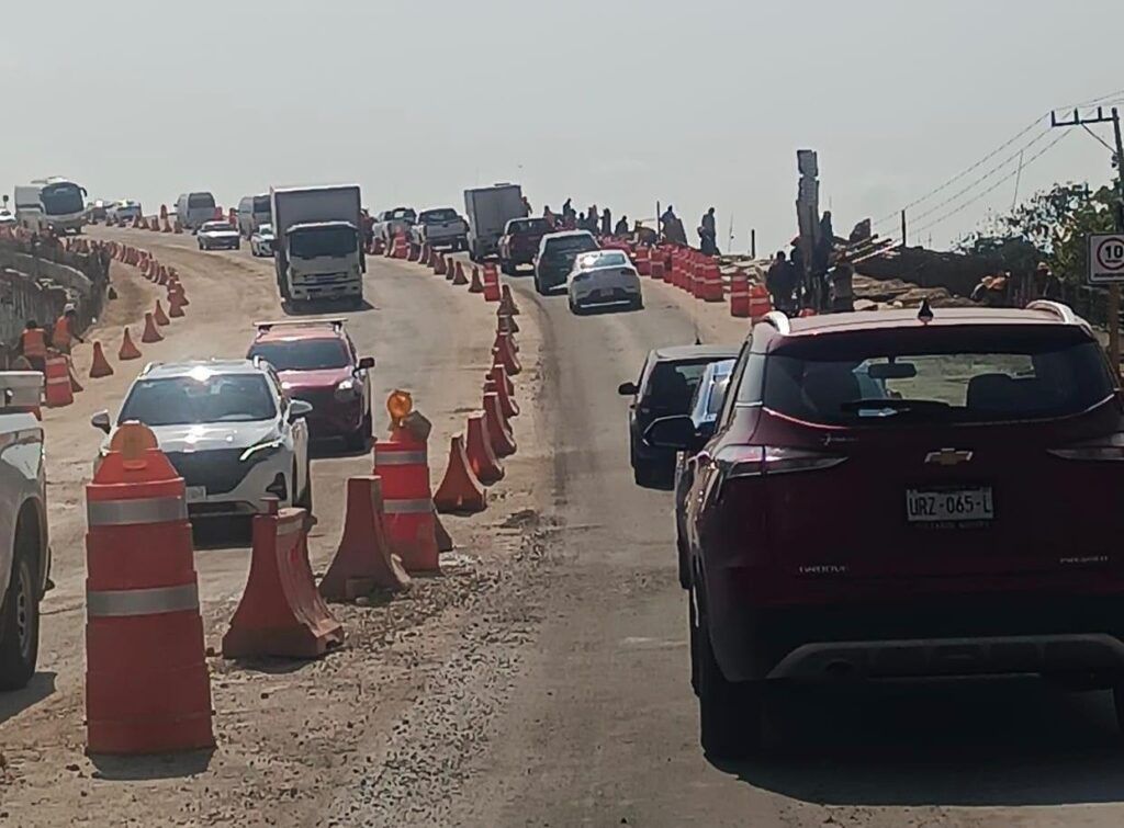 “Es un peligro, si aún no terminan la obra porque nos obligan a pasar por aquí, no este pavimentado, los bloques de platico naranja, no son una protección de nada. La gente de las obras solo te da el banderazo abajo del puente. Pero, arriba no hay señalización, nadie está auxiliando a los automovilistas. Si nos caemos, solo nosotros, el Ejército bien gracias abajito”, reprochó Jacobo uno de los automovilistas obligados a transitar en la obra negra.