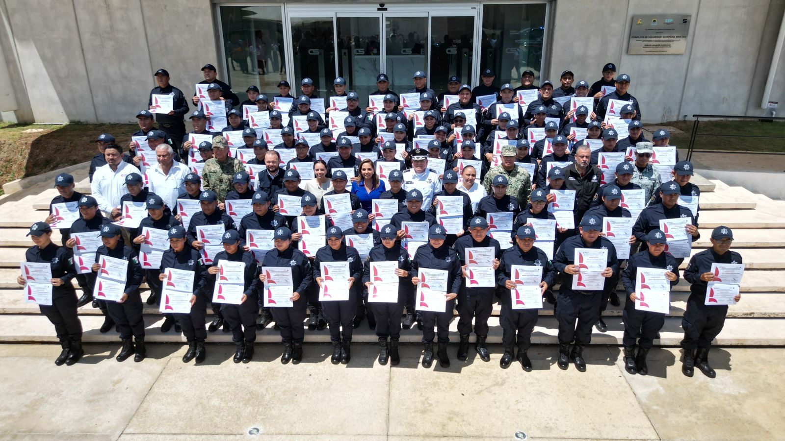 CANCÚN, Quintana Roo, 4 de septiembre. —  Con base en la estrategia del Nuevo Modelo de Seguridad Ciudadana que impulsa la gobernadora Mara Lezama Espinosa para avanzar en la construcción de la paz para las y los quintanarroenses, 101 elementos culminaron con éxito el curso “Formación Inicial para Policía de Proximidad”, con duración de mil 080 horas, en la Academia Estatal de la Secretaría de Seguridad Ciudadana.