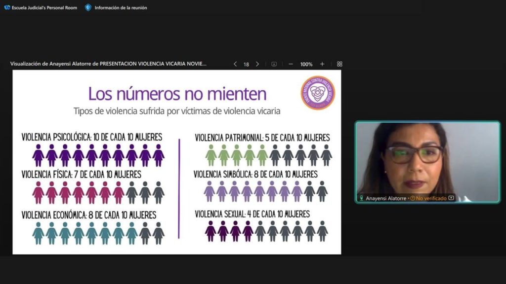 Desde sus experiencias, las activistas feministas, Anayensi Alatorre y Nora Yebra, explicaron qué es la violencia vicaria e institucional; el marco normativo para su erradicación; los derechos de las niñas, niños y adolescentes que son vulnerados; la red de cómplices y los estereotipos en torno a esta violencia; temas que propiciaron el análisis y el intercambio de experiencias entre los operadores de justicia.