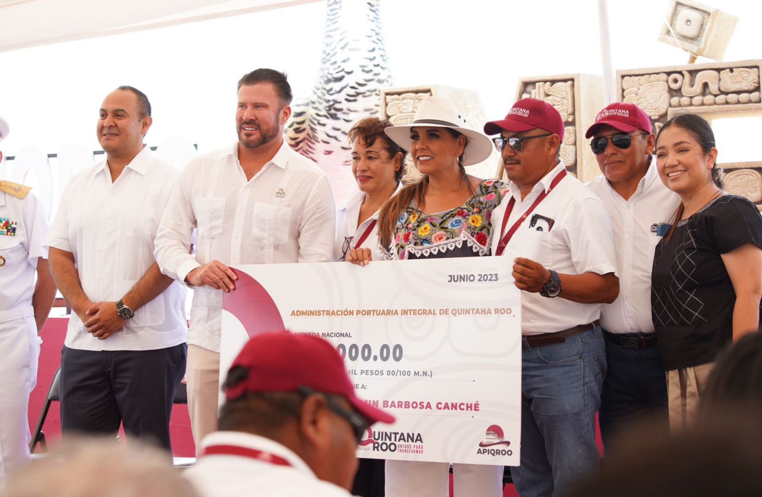 Durante la celebración del Día del Trabajador Portuario que se realizó en el muelle fiscal de Chetumal, la capital del estado, Mara Lezama y el director de la Administración Portuaria Integral de Quintana Roo (APIQROO), Vagner Elbiorn Vega, reconocieron el trabajo de quienes cuentan con 15, 20, 25 o más años de servicio. Asimismo, develaron la placa del “Salón de Directores de la APIQROO”.