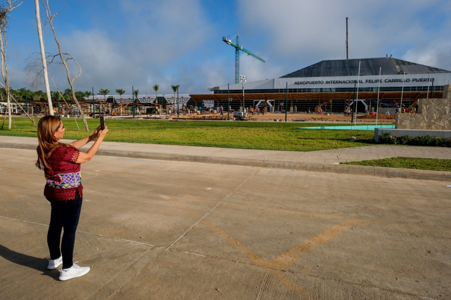 El aeropuerto “Felipe Carrillo Puerto” representa más de 75 mil metros cuadrados de construcción que son el resultado del extraordinario trabajo hecho por manos de miles de mexicanas y mexicanos, con una pista de 3.7 kilómetros de largo de concreto hidráulico, siendo la de mayor longitud en toda la península de Yucatán, que permitirá el aterrizaje de aeronaves con tecnología de última generación, con una torre de control imponente, un edificio terminal para pasajeros y una para vuelos privados (FBO).