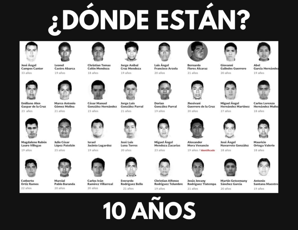 En el marco de la conmemoración por los 10 años de la desaparición forzada de los 43 jóvenes estudiantes de Ayotzinapa, y en vísperas de la toma de posesión de la presidenta electa Claudia Sheinbaum Pardo manifestó que Ayotzinapa es un caso emblemático de las inconsistencias, complicidades, intereses y omisiones que bloquean la impartición de justicia para las familias.