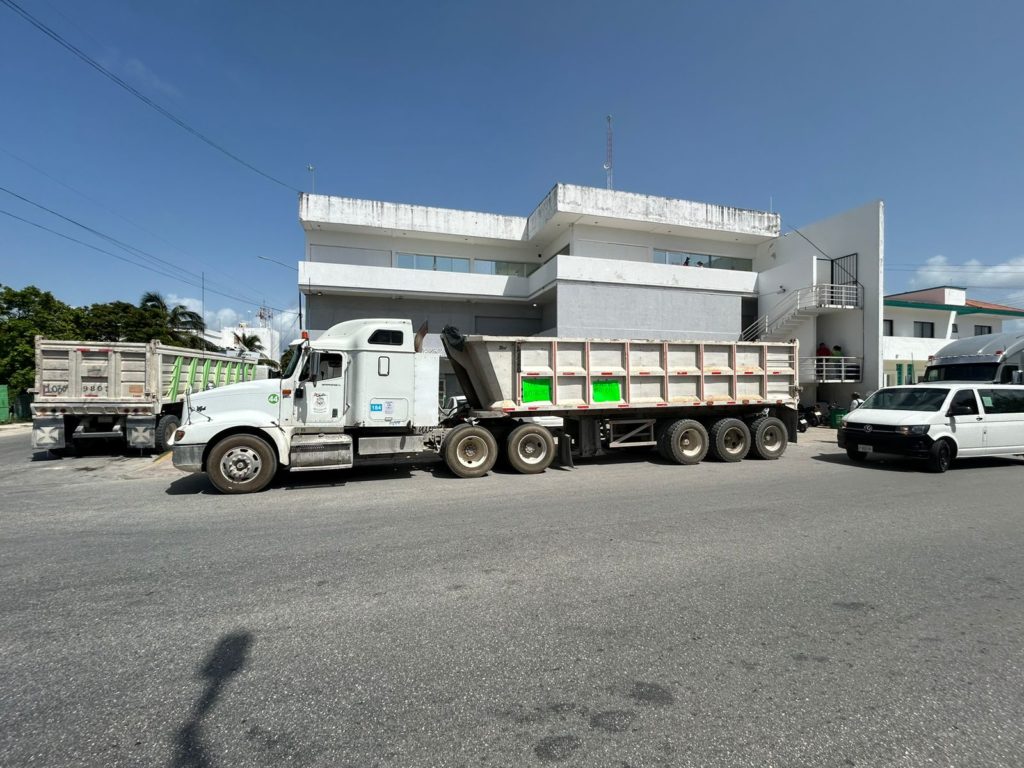 PLAYA DEL CARMEN, Quintana Roo, 31 de julio.-  Por lo menos dos trailers con remolque tipo góndola fueron puestos en la entrada de la empresa ICA en la colonia Ejido, esto para exigir el pago de varios de trabajo de repartir asfalto en los trabajos del Tren Maya, que no les han dado desde el mes de febrero.