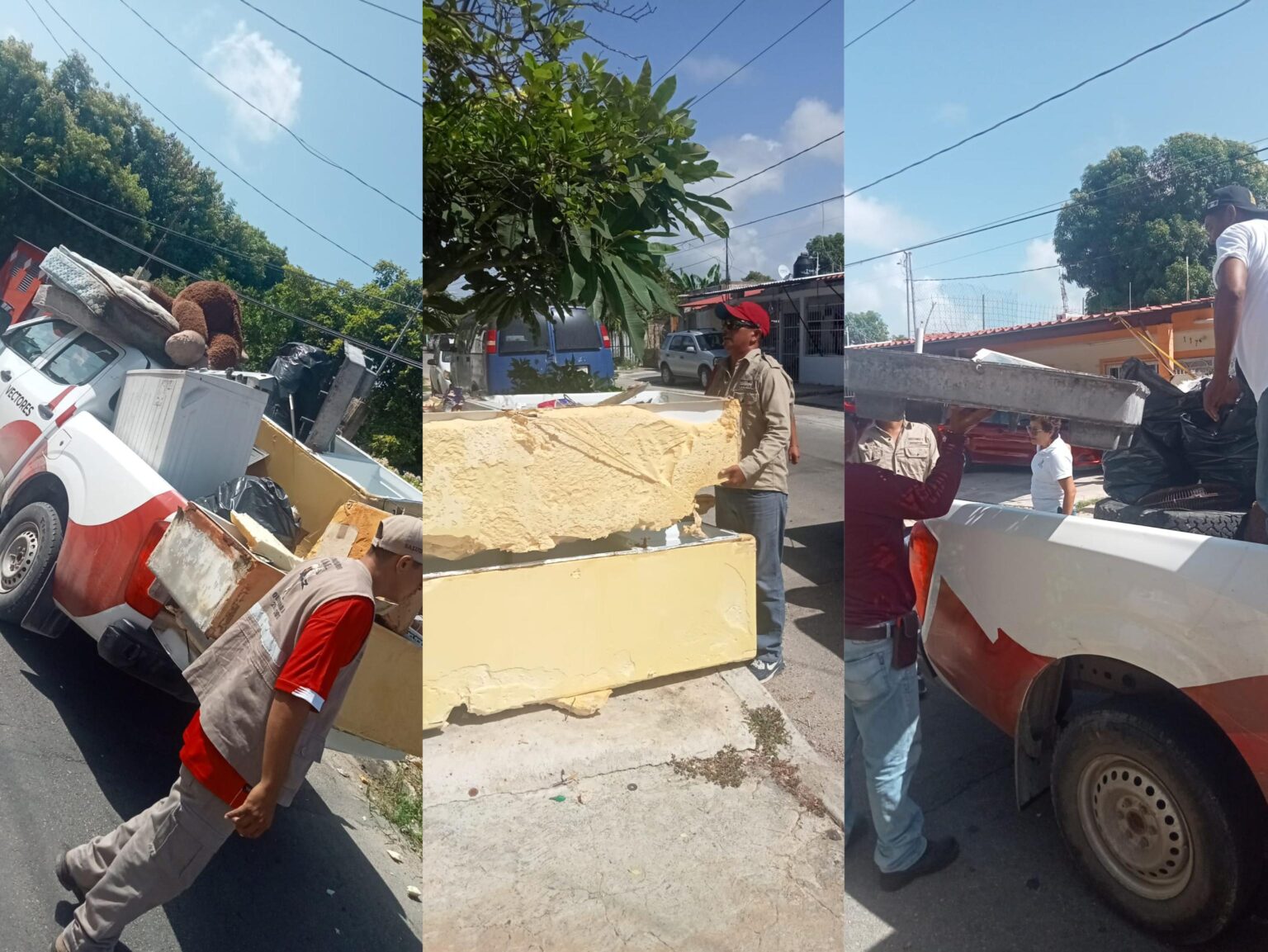 CHETUMAL, Quintana Roo, 16 de agosto.- Con una buena respuesta de las vecinas y vecinos, en la colonia Del Bosque de la capital del Estado se recolectaron más de 5 toneladas de cacharros como parte de la Cuadragésima Primera Jornada de Eliminación de Criaderos de Larva de Mosco Transmisor del Dengue, Zika y Chikungunya.
