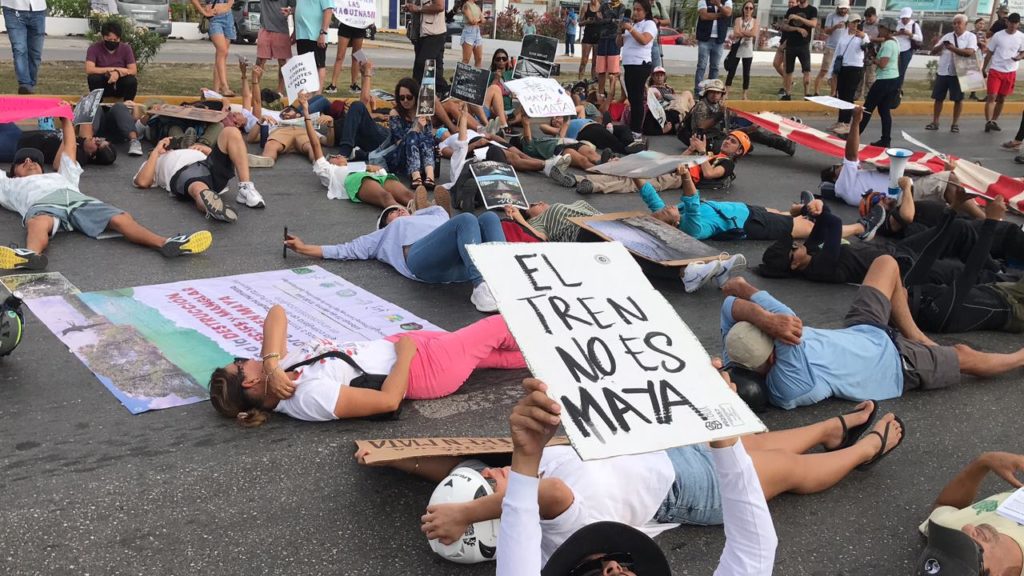 En el marco del Día Mundial del Agua, playenses manifestaron su repudio al proyecto, y señalaron afectaciones irreversibles al medio ambiente en el municipio de Solidaridad prácticamente con las obras en los Tramos 5, y 6 del Tren Maya, que aseguran se construye sobre el sistema cavernoso y acuífero en la Riviera Maya, vestigios arqueológicos, y ha devastado la selva quintanarroense.