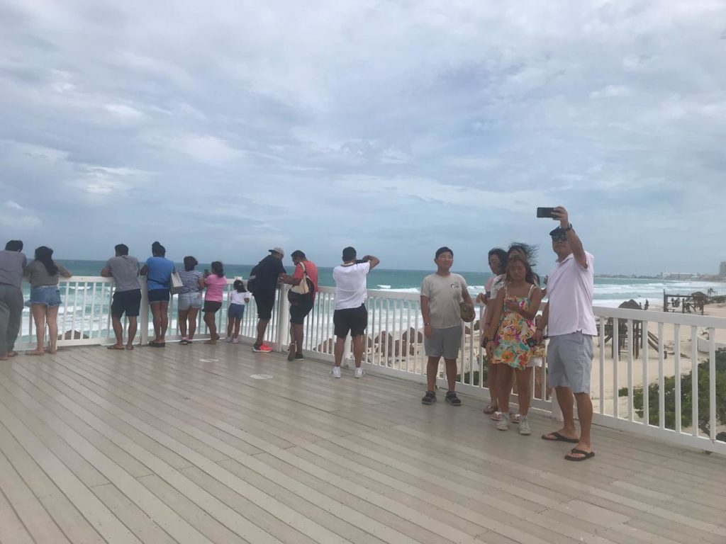 CANCÚN, Quintana Roo, 5 de Julio.- Se reactivó la actividad turística en la zona hotelera de Cancún a unas horas del paso del huracán Beryl, lo anterior se pudo observar desde playa Delfines donde un importante número,  tanto de turistas como de locales se concentraron en el mirador para apreciar las majestuosas olas del mar con los remanentes del ciclón.