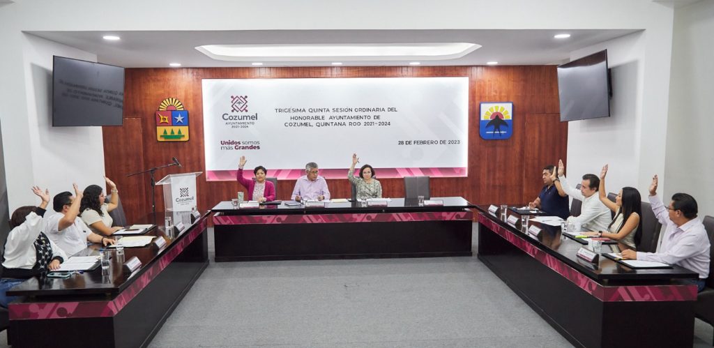 En la que fue la Trigésima quinta sesión ordinaria de cabildo realizada en el salón municipios de Quintana Roo, los concejales aprobaron por mayoría la iniciativa simple del punto de acuerdo suscrita por la presidenta municipal ante el cuerpo colegiado en la que propuso la firma de un Convenio de colaboración entre el Municipio de Cozumel y la Profeco, a fin de permitir la operatividad de la oficina de representación de esta institución federal en la isla.