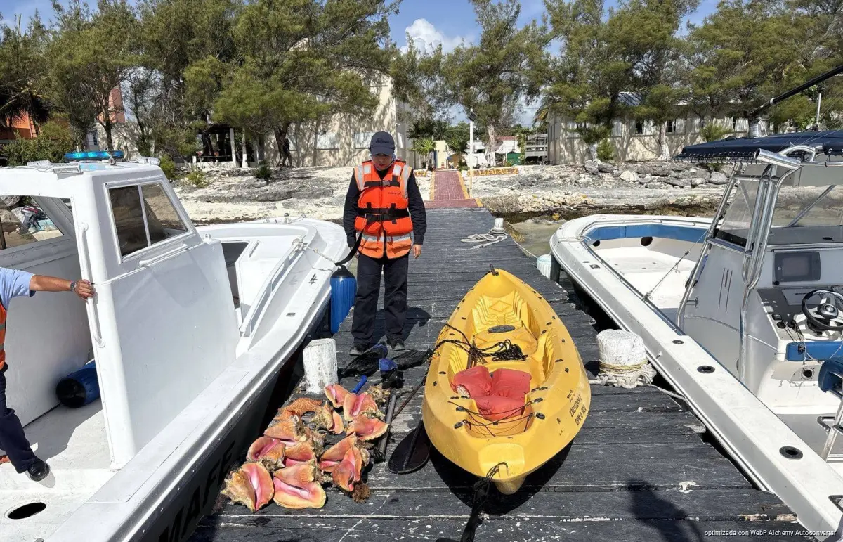 caracol rosado CONAPESCA delito ambiental embarcación asegurada estrella de mar fauna marina kayak Operativo pesca ilegal Playa Azul QUINTANA ROO Secretaría de Marina Yum Balam
