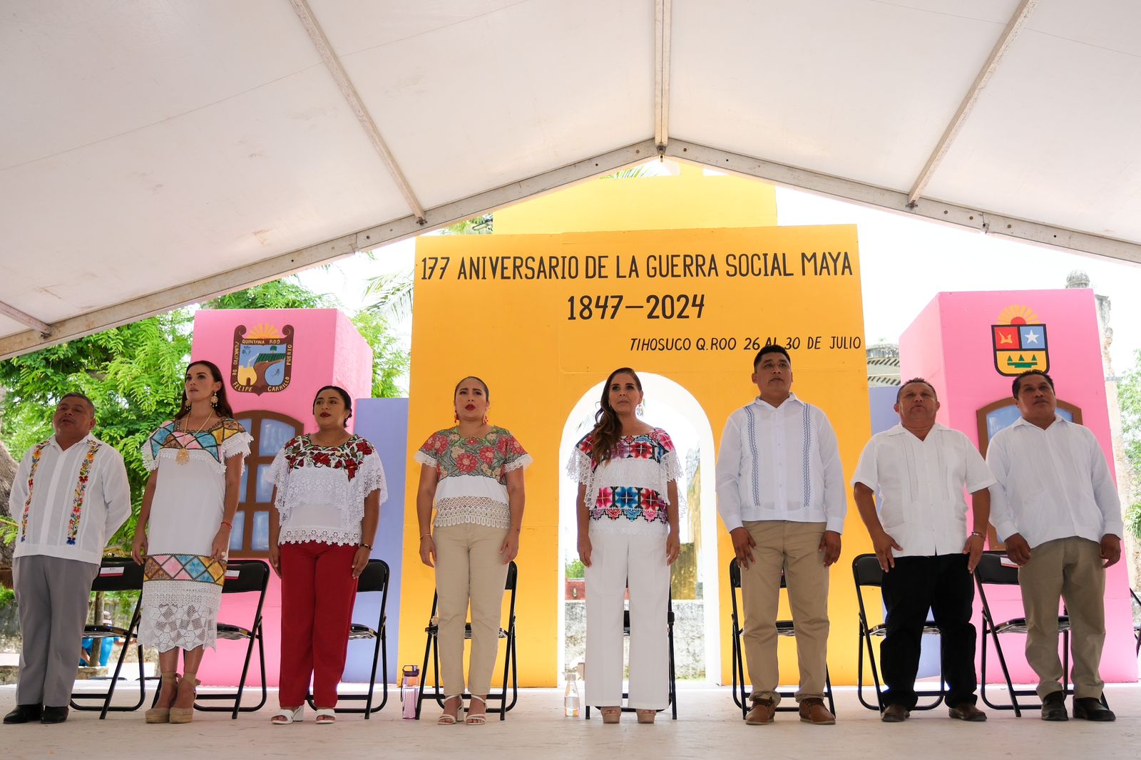 Tihosuco, Quintana Roo, 30 de Julio.- Al encabezar la conmemoración del 177 Aniversario de la Guerra Social Maya en el parque principal de Tihosuco, la gobernadora Mara Lezama Espinosa reiteró que en este gobierno humanista y progresista se trabaja, desde el primer día, por mejores condiciones para saldar la deuda histórica con el pueblo Maya, a partir de un Quintana Roo incluyente, participativo, solidario y que viva en torno a los valores ancestrales y tradiciones.