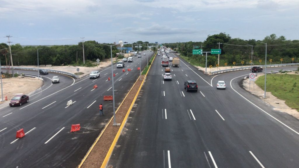 Asimismo, se pudo observar que hay algunas obras pendientes, como el puente peatonal frente a la Universidad Anáhuac, una parte de la estructura de concreto en una de las rampas de acceso, en el sentido de Cancún a Playa del Carmen.