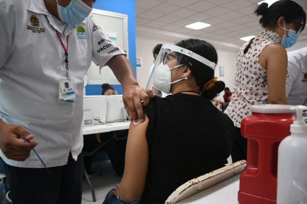 La secretaria de Salud, Alejandra Aguirre Crespo, informó que el avance representa el 96.1 por ciento del total de dosis que llegaron a Quintana Roo el pasado miércoles 17 de febrero.