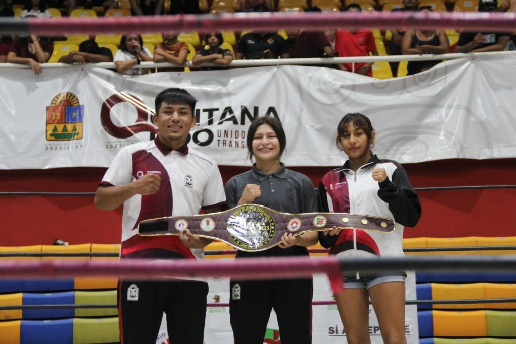 Acompañada por el presidente de la Asociación de Boxeo de Quintana Roo, Víctor García Sánchez, además de los medallistas de plata en los pasados Juegos Nacionales Conade, Jonathan Regalado Estrada y Rubí Esmeralda Euán Sánchez, la presidenta municipal dio el campanazo inicial de este evento que culminará mañana domingo.