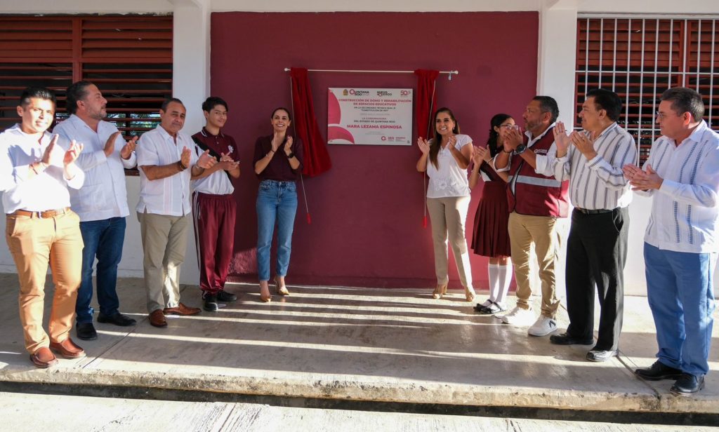Cancún, Quintana Roo, 31 de enero de 2024. – Con inversión de 8 millones 340 mil pesos, la gobernadora Mara Lezama Espinosa entregó un domo y la rehabilitación de espacios educativos en la secundaria técnica No. 31 “Constitución de 1917”, obras de buena calidad que fueron realizadas con recursos de la ciudadanía que son destinados para el bienestar social.