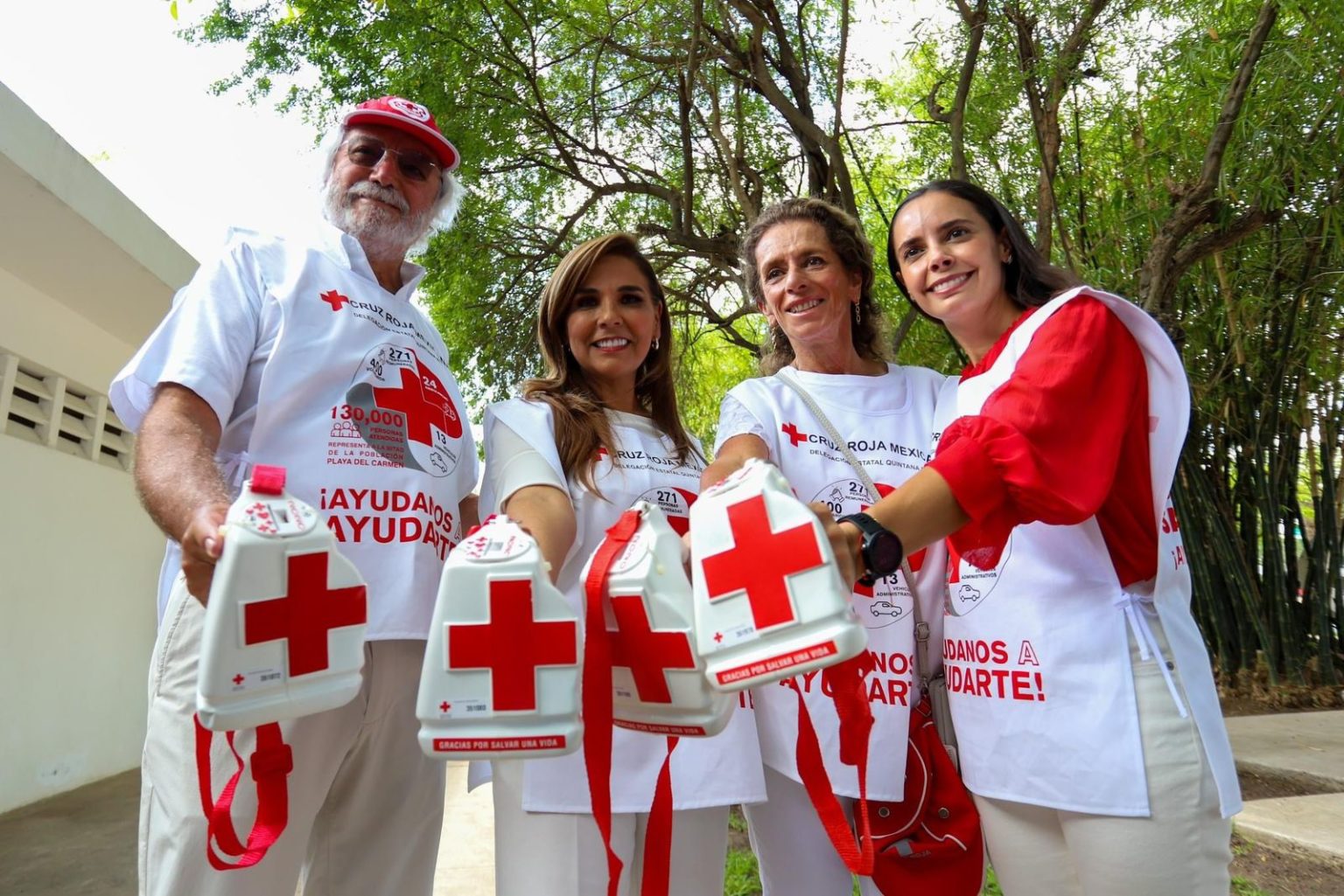 Acompañada de Carlos Constandse Madrazo, presidente del Consejo Directivo de la Cruz Roja en Quintana Roo, de Ana Paty Peralta de la Peña, presidenta municipal de Benito Juárez; de Mariana Jamit, presidenta de damas voluntarias de la Cruz Roja de Cancún, la gobernadora Mara Lezama destacó la importancia de la participación ciudadana.