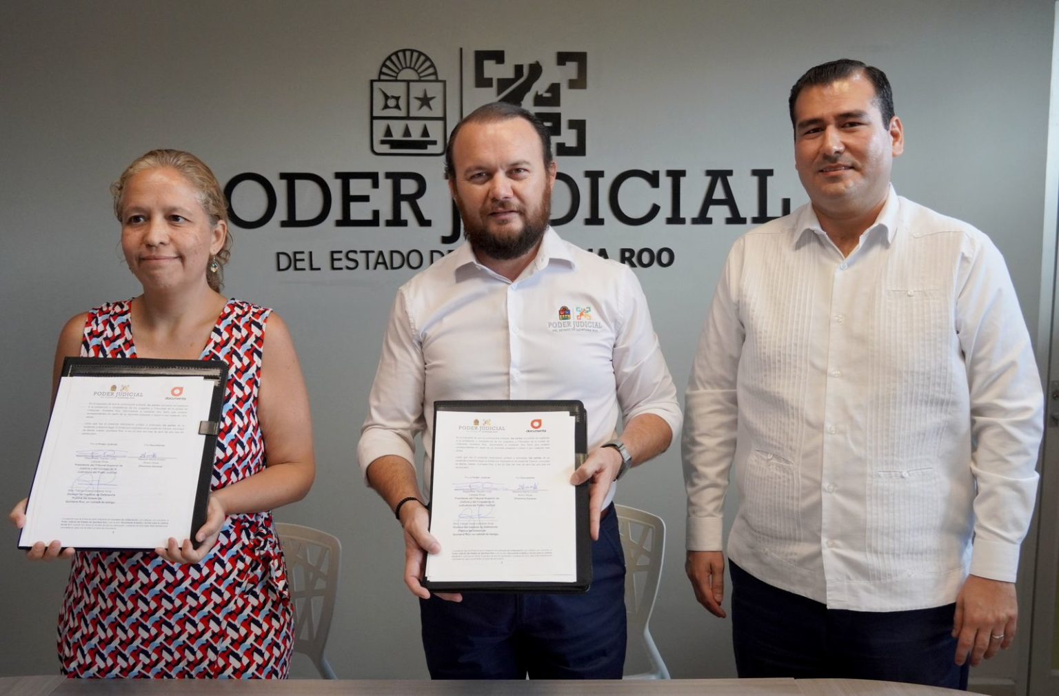 Cancún, Quintana Roo, 22 de abril de 2024. – En un acto significativo para la promoción y protección de los derechos humanos, el Magistrado presidente del Poder Judicial de Quintana Roo, Heyden Cebada Rivas, el director del Instituto de la Defensoría Pública, Fabián Gamboa Song y la directora general de Documenta A.C., María Sirvent Bravo, firmaron un convenio de colaboración.