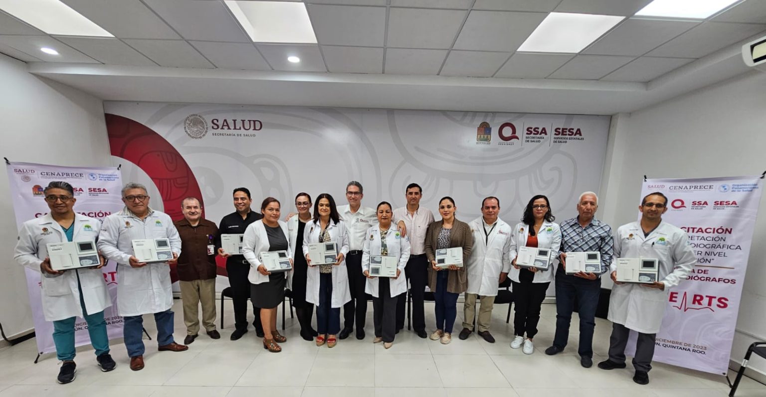 Cancún, Quintana Roo, 17 de diciembre. – Como resultado del trabajo colaborativo con la Organización Mundial de la Salud (OMS) y la Organización Panamericana de la Salud (OPS), se desarrolló el curso-taller “Interpretación Electrocardiográfica para Primer Nivel de Atención” además de la entrega de electrocardiógrafos a unidades médicas.