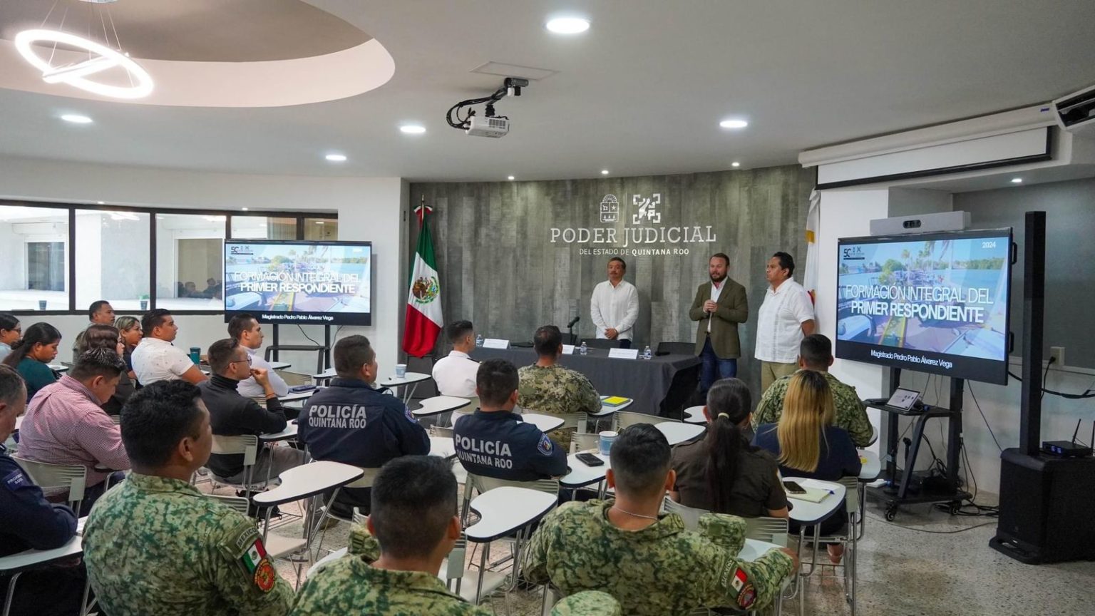 En la entrega de conocimientos, a cargo del Magistrado Pedro Pablo Álvarez Vega, Titular de la Séptima Sala con Competencia en la Materia Penal en el Sistema Tradicional; se contó con la participación del personal de la Secretaría de la Defensa Nacional, Secretaría de Marina, Guardia Nacional, Secretaría del Bienestar, Fiscalía General del Estado, de la Secretaría de Seguridad Ciudadana, Instituto Nacional de Migración y de las Direcciones de Seguridad Pública en los Municipios de Benito Juárez, Isla Mujeres, Solidaridad y Lázaro Cárdenas.