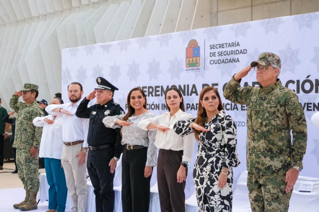 La Gobernadora estuvo acompañada de la presidenta municipal de Benito Juárez, Ana Paty Peralta de la Peña, quien también extendió felicitaciones a los graduados; el magistrado Heyden Cebada Rivas, presidente del Tribunal Superior de Justicia; la presidenta del Sistema DIF Quintana Roo, Verónica Lezama Espinosa; la secretaria de Gobierno Cristina Torres Gómez, así como José de la Peña, coordinador del Gabinete de Seguridad del Estado.
