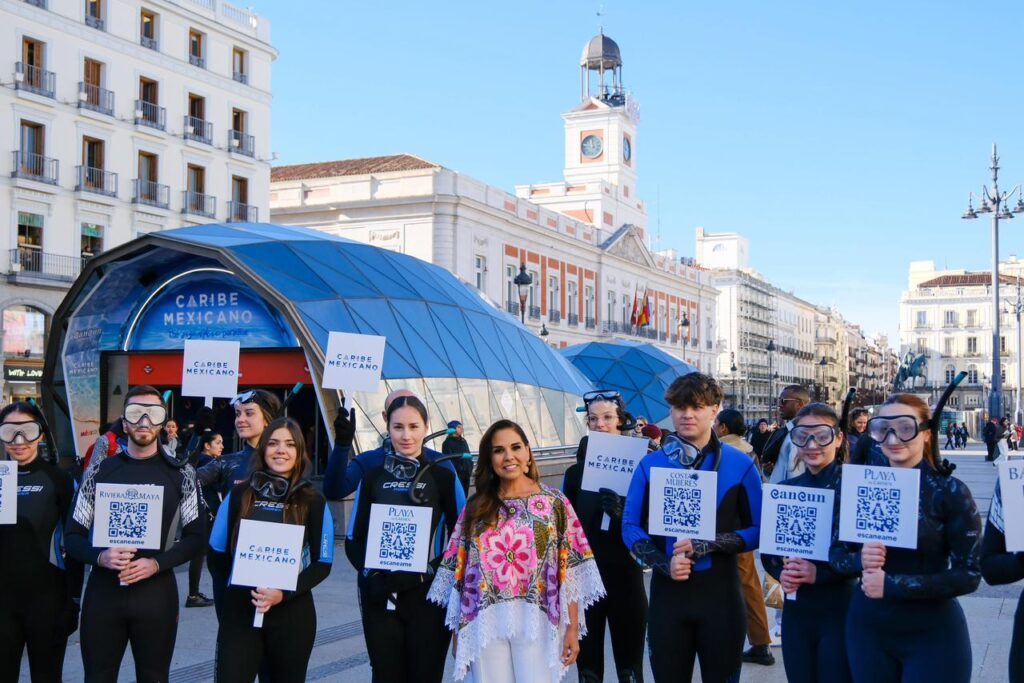 Madrid, España.- El Caribe Mexicano llegó al corazón de Europa con una activación turística de alto impacto en la emblemática Puerta del Sol, uno de los espacios más icónicos y transitados del corazón de Madrid, donde diariamente convergen turismo, cultura y vida urbana.