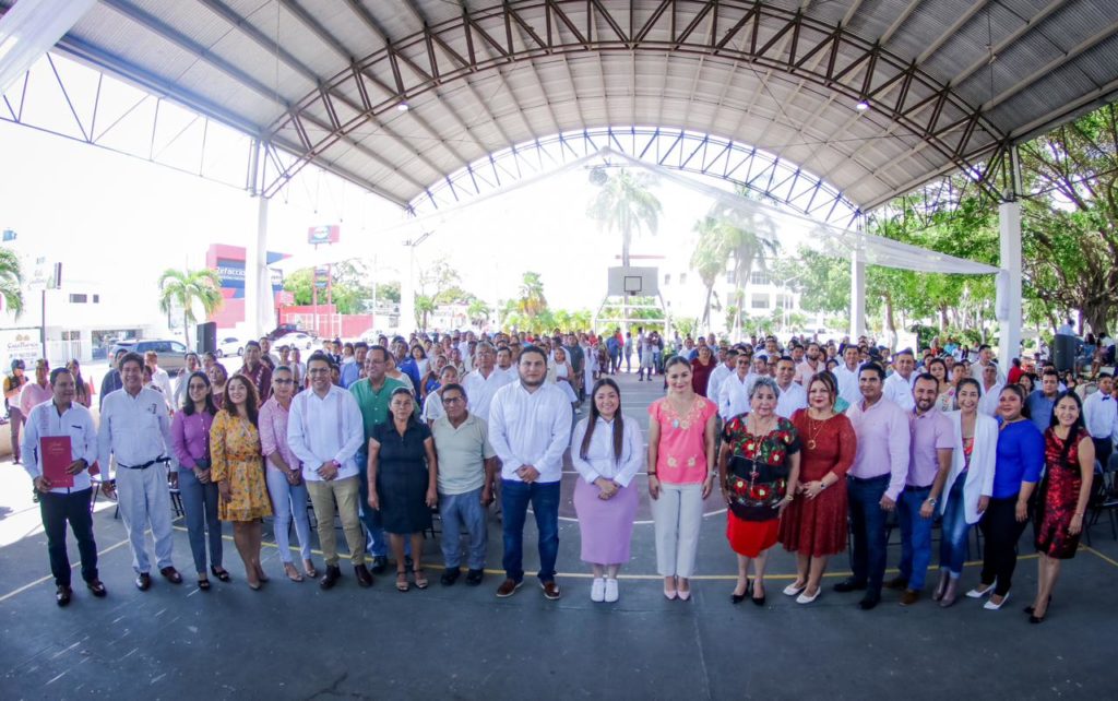 En este mismo acto, la presidenta municipal Yensunni Martínez y su esposo, y presidente del sistema DIF municipal David Hernández Solís, atestiguaron el enlace matrimonial de la pareja formada por Francisco Campos Darza y Rebeca Ytzah Mukul.