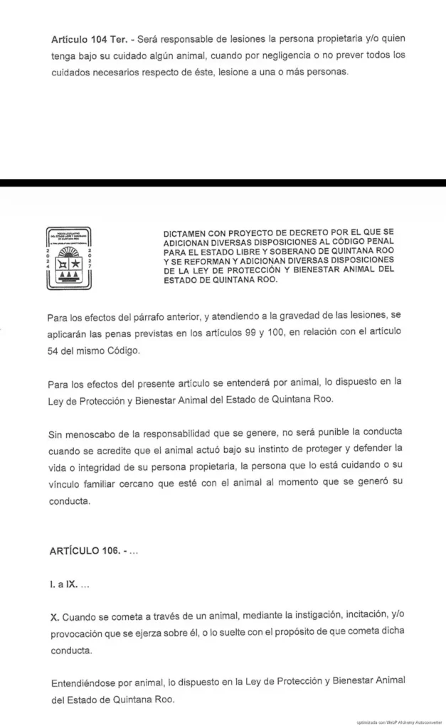 El diputado explico que la reforma al artículo 104 tiene como objetivo eliminar la impunidad en incidentes en el que los animales son utilizados para atacar a otras personas, y en algunos otros animales (perros o gatos) de forma intencional o por descuido.