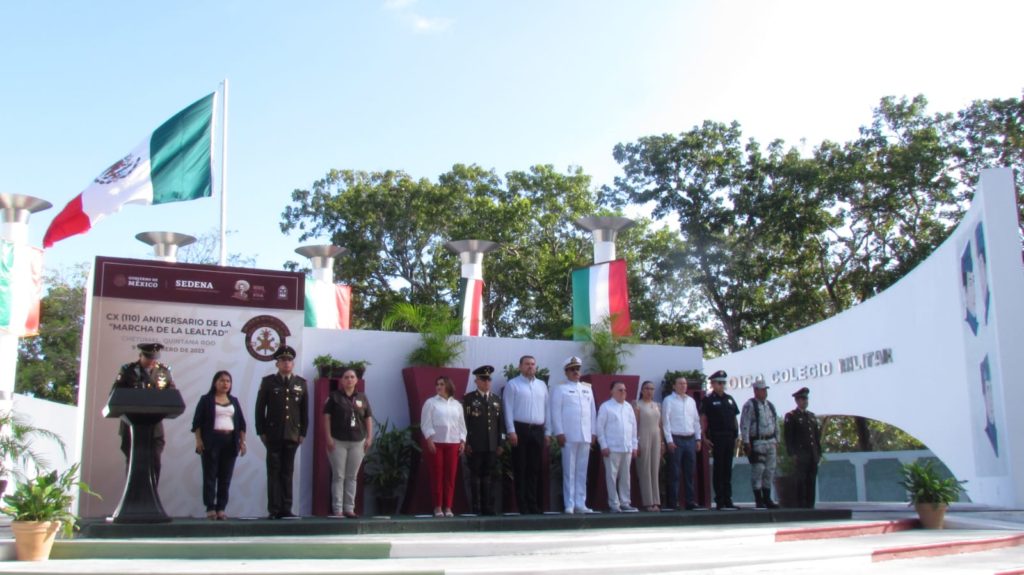 Chetumal, Quintana Roo, 09 de febrero. – El Ejército Mexicano y la Guardia Nacional en el marco conmemorativo al Bicentenario de fundación del Heroico Colegio Militar llevaron a cabo una emotiva ceremonia con motivo de “La Marcha de la Lealtad” en la ciudad de Chetumal.